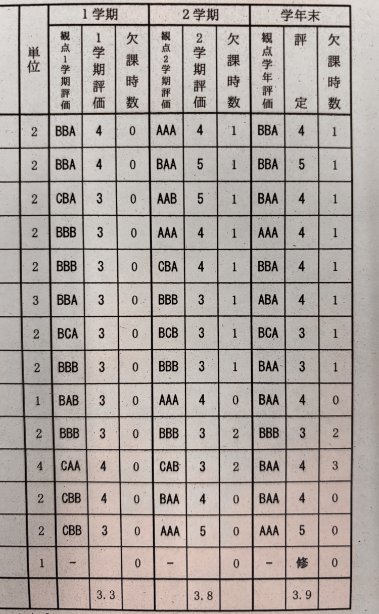 もちろんこれも必要科目に絞り、学校からお知らせされている評定平均をしっかりクリアしていきました。