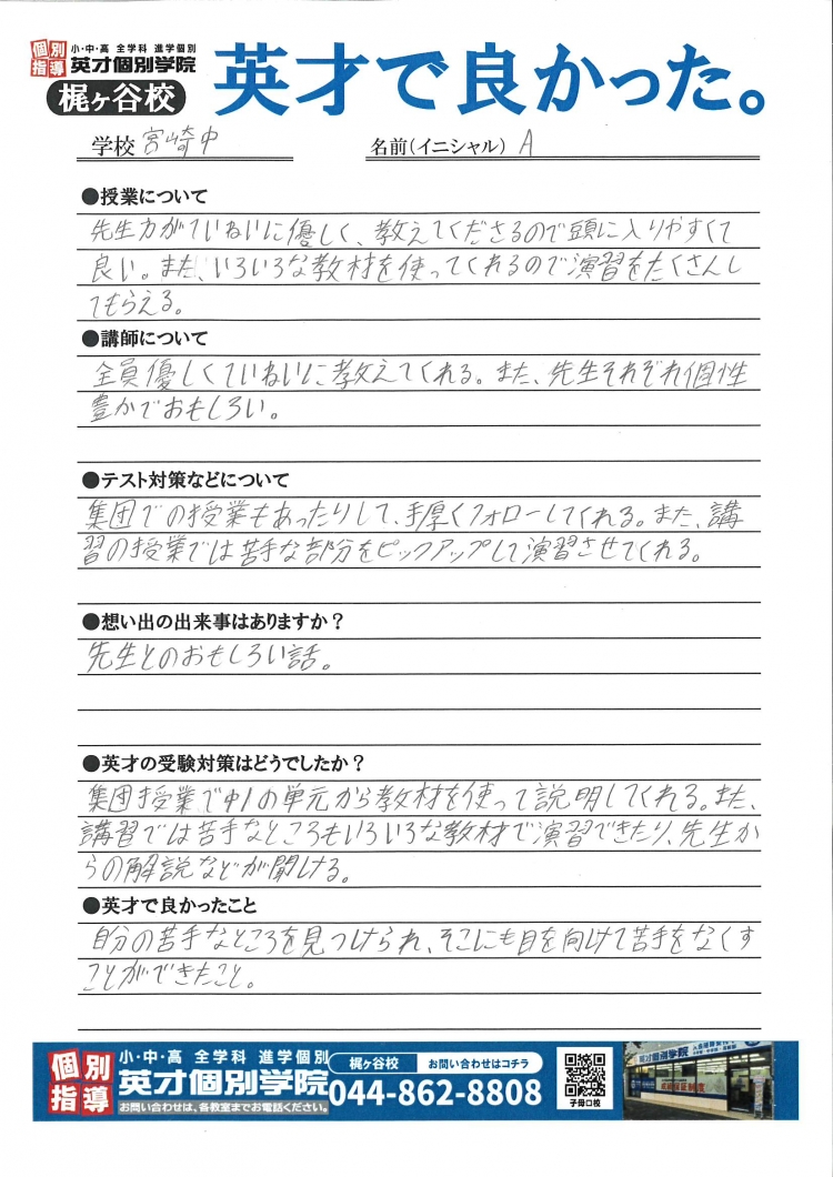 英才のいい所をアンケートで答えてもらいました😉