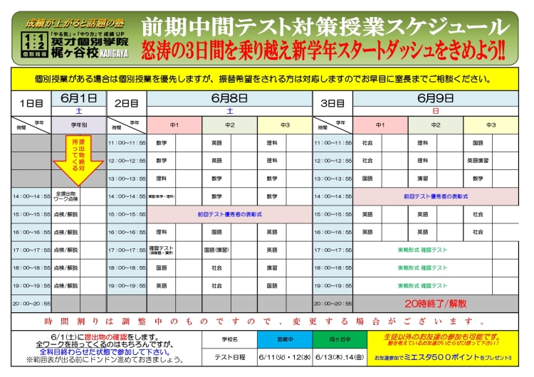 ・テスト前に全教科