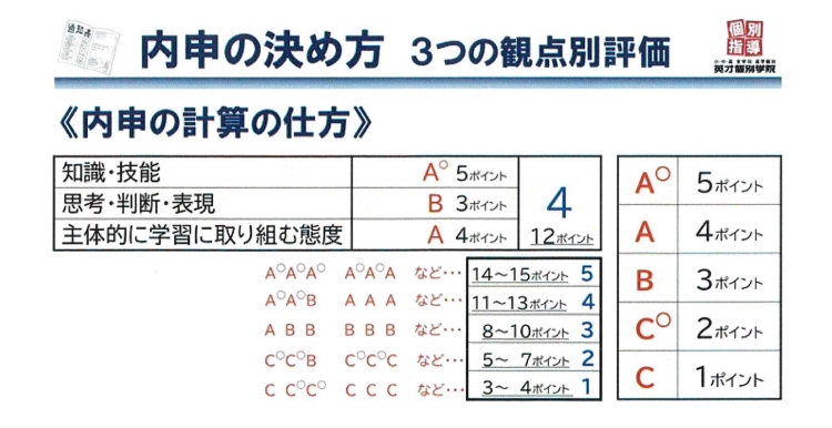 今回は内申の決め方について