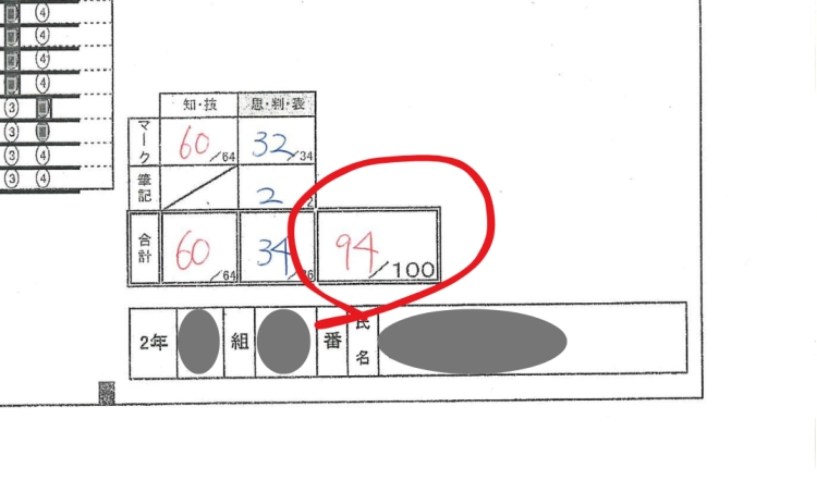 2年生の理科で94点です!
