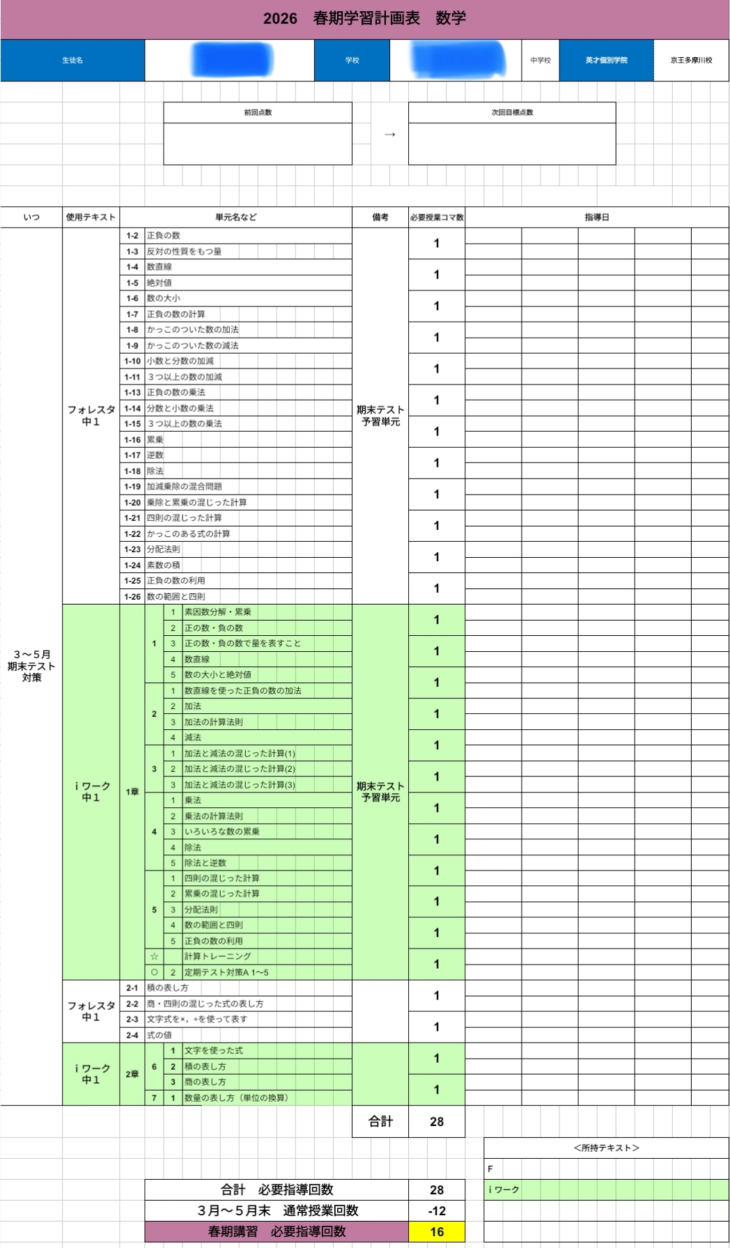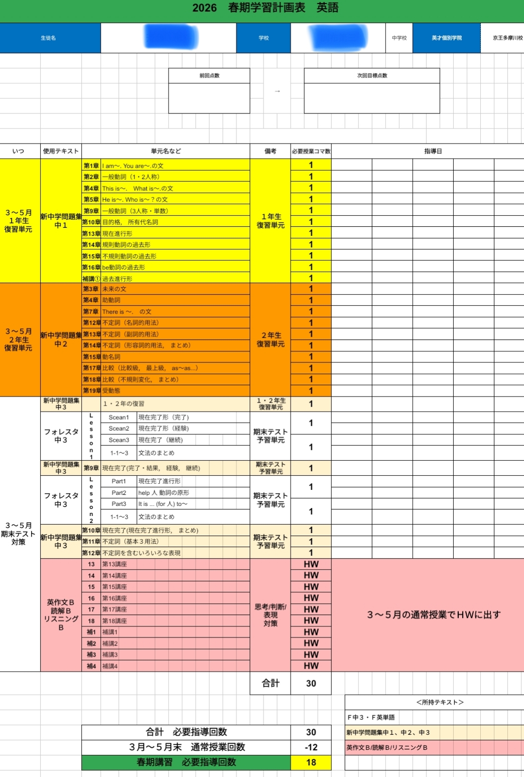 学校進度に合わせた授業を行うだけ
