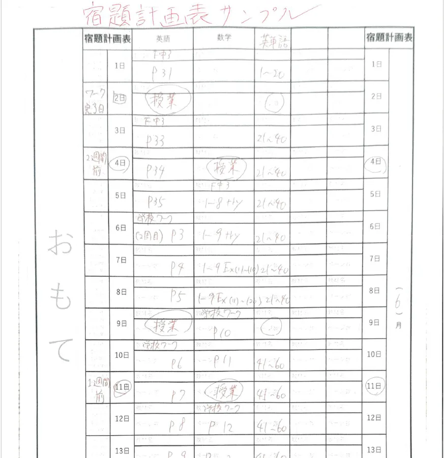 ③宿題でもう一度確認。日割りで宿題を出すことで反復して演習。記憶に定着していきます!