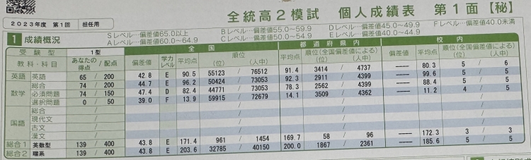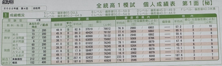 中3・4月の千葉県統一テスト:5科目偏差値47