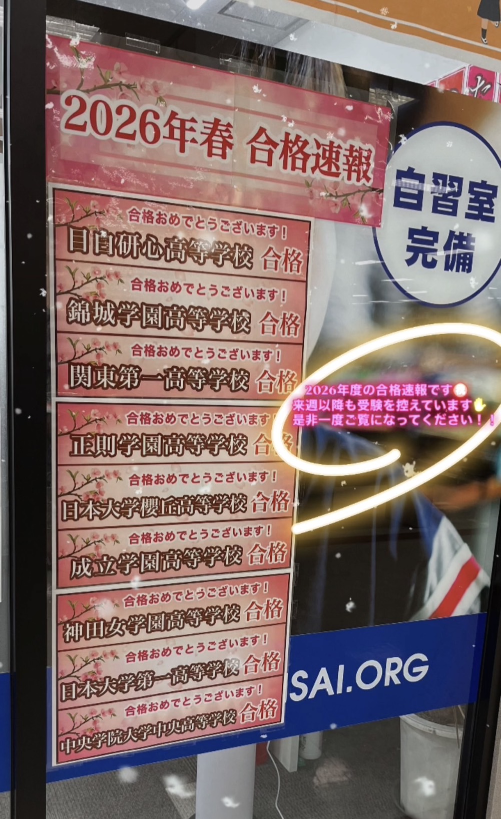 イオン南砂校の入口にも、合格速報が早速掲示されています!