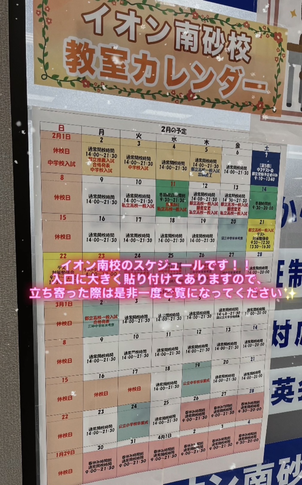 ついでにガラス越しにイオン南砂校の雰囲気も見ていただけますと幸いです。