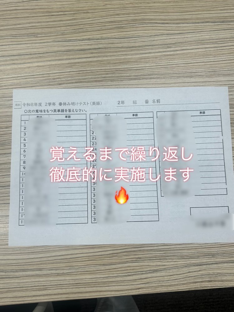テスト明け1発目のテストで良い成績を取れるよう精一杯サポートしてまいります!