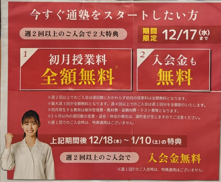 さて、現在イオン南砂校では年に一度のキャンペーンを行っています。