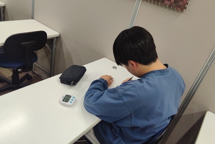 ↑ 受験期、共通テスト過去問に時間をはかって臨む後ろ姿!