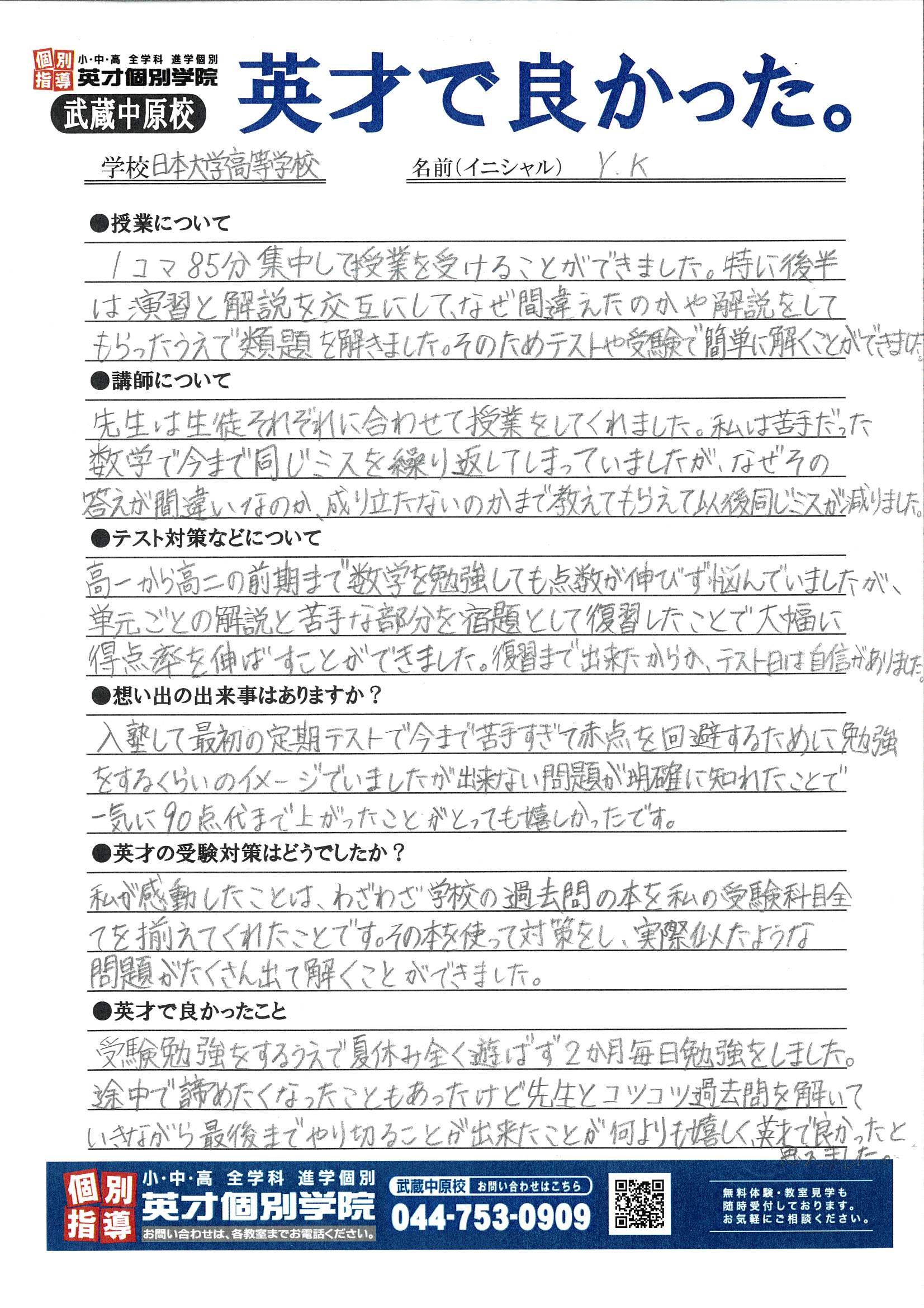 ✨日本大学高校、基礎学力到達度テストのスコアアップでつかんだ合格!✨