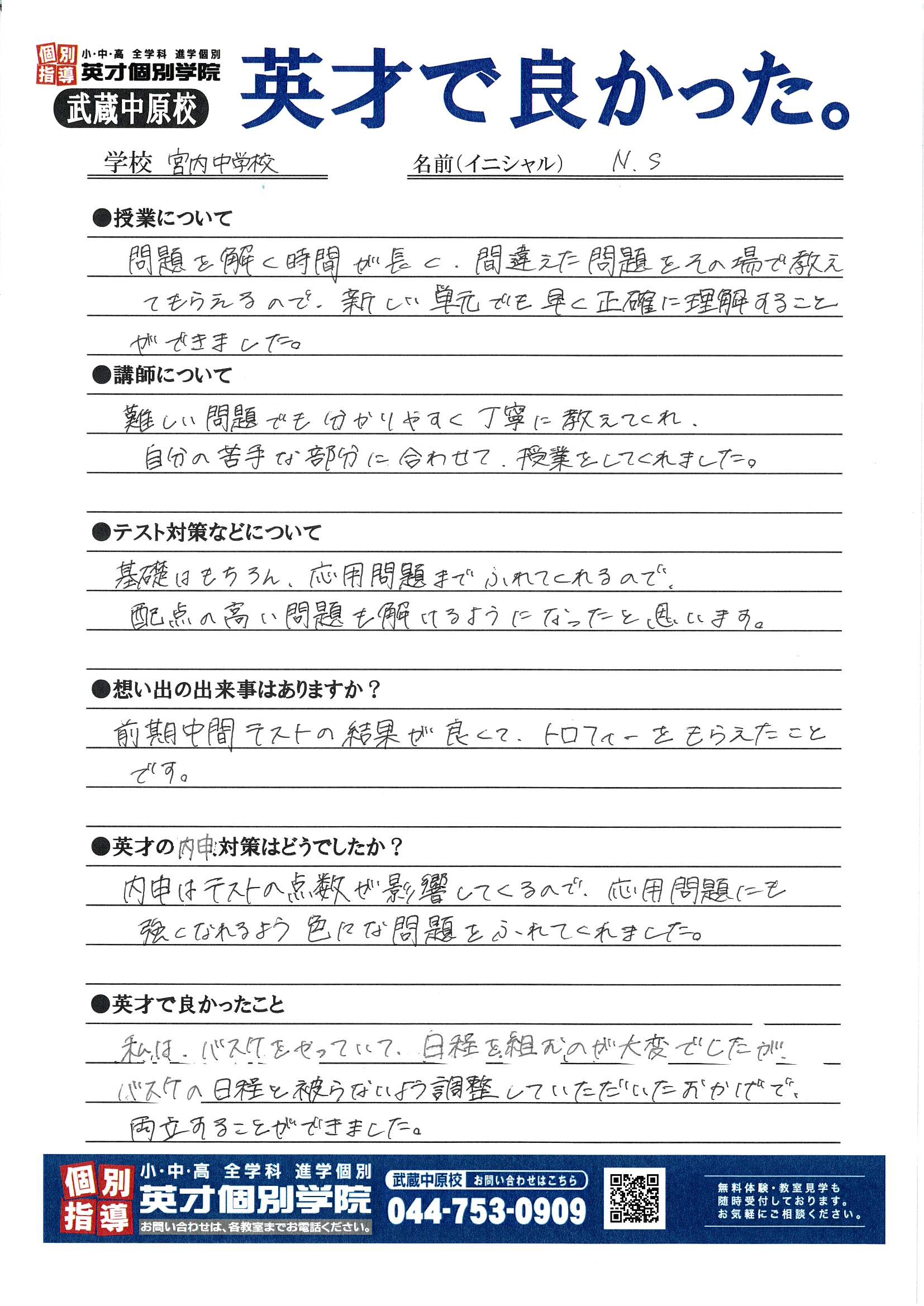 ✨オール5近くまで中3後期中間内申で引き揚げた!7UPの成果!✨