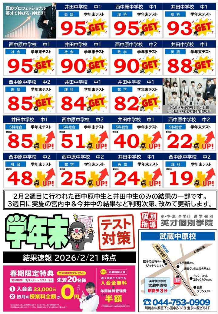 💯 中学部 学年末テスト結果速報! 💯