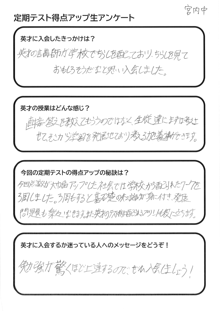 【宮内中3年】前期中間テスト国語、12点UP‼