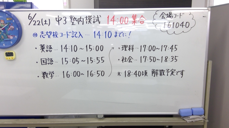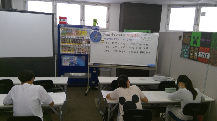 中3生は年度初の定期テストを終えたばかり…。範囲が定期テストよりも広かったこともあってか、生徒たちの表情は実に様々。程よい緊張感の中で取り組めた様子でした。
