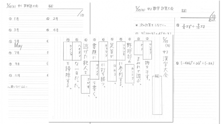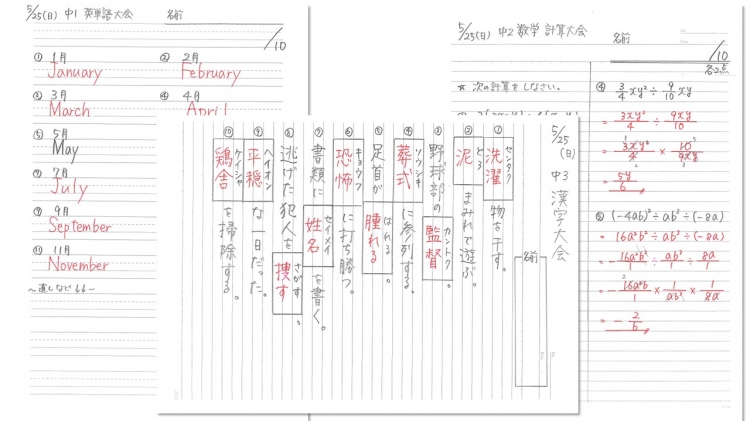 今回は「英単語大会」「計算大会」「漢字大会」と称して、テスト範囲に合わせて作成して途中で実施!