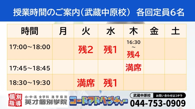 こんにちは。武蔵中原駅の近くにある個別指導の進学塾、英才個別学院 武蔵中原校です。