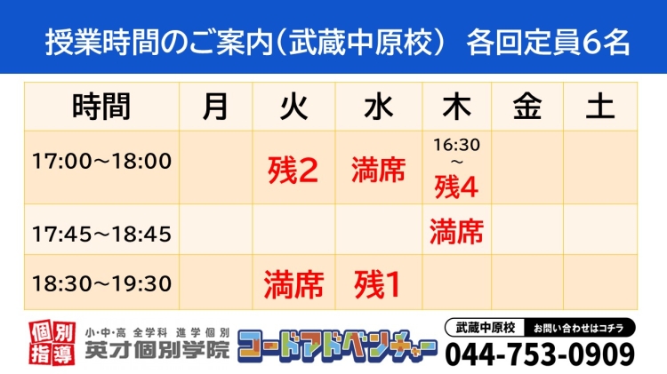 その場合にはこちらを更新させていただきますが、お早めに確認されたい場合はお手数ですが教室までご連絡下さい。