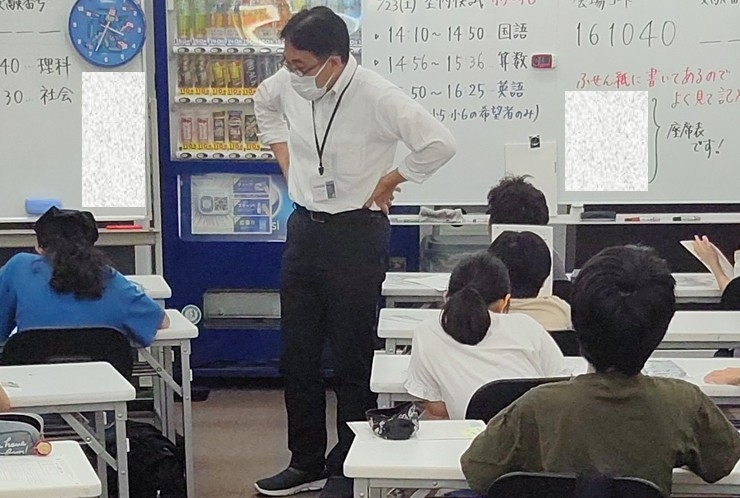 模試中、スタッフは教室を静かに巡回しています。ただ見回っているだけではなく…