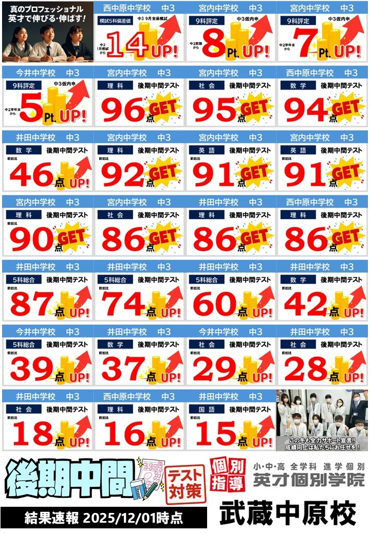 後期中間テストだけではなく、評定UP・模試偏差値UPについても掲載しました!