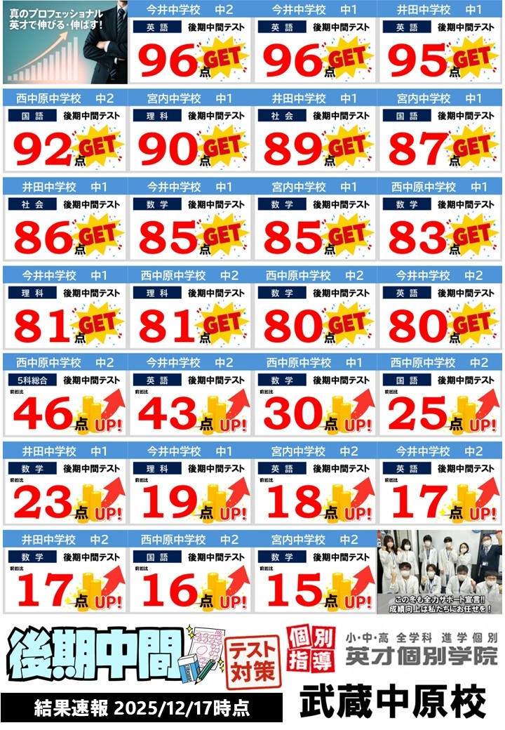 📝中1生・中2生 結果速報 🕐