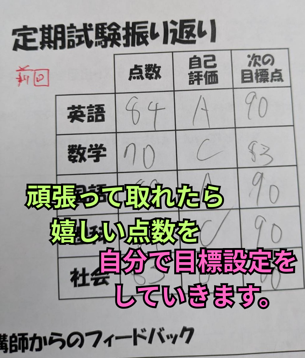 学習を始める前に先生と一緒に決めます。ゴールが見えることで、集中力が劇的に変わります。