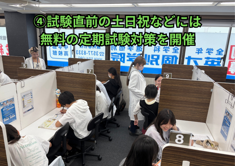 - ④ 試験直前の土日祝などには無料の定期試験対策会を開催!