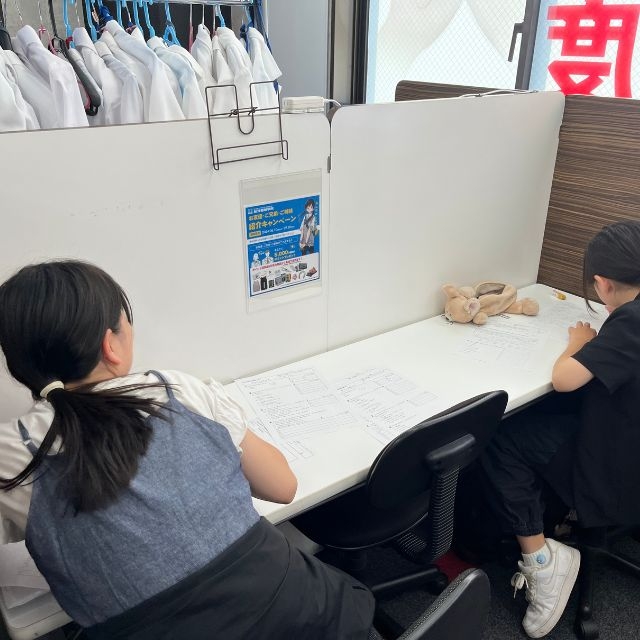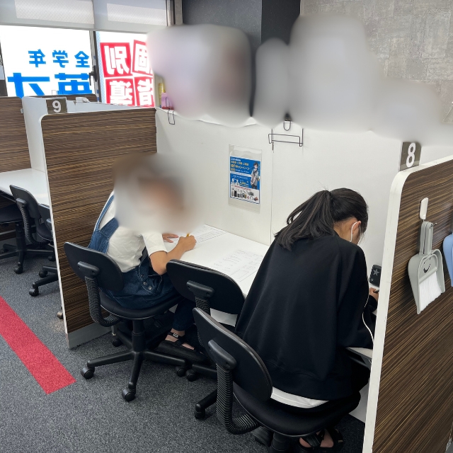 「ヤバい」「分からないよー」と言いながら、講師に色々質問して頑張ってプリントを解いていました。