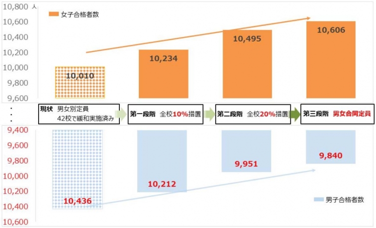 では、具体的に男女の合格者数はどうなるか。