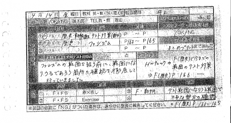 お子様本人と話し合い、テストまでにどのくらいの量が必要なのかを判断し、