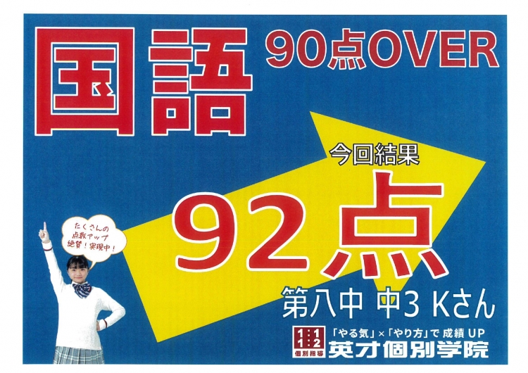 八中中3 Kさん 国語92点!