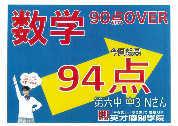 六中中3 Nさん 数学94点!