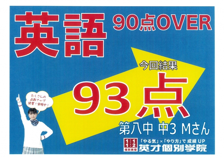 八中中3 Mさん 英語93点!