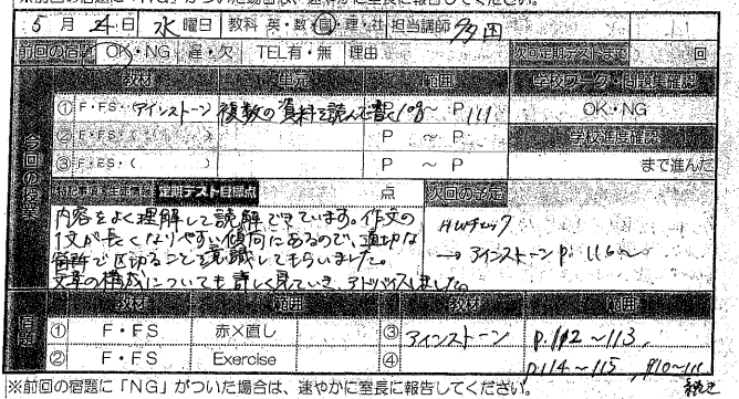 そこで英才個別学院ではまずはどの程度の文章を書くことが出来るのか、文章を書くことに抵抗はないかといったところからはじめました。