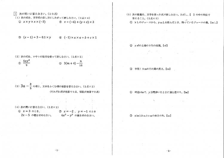実際の問題用紙です。