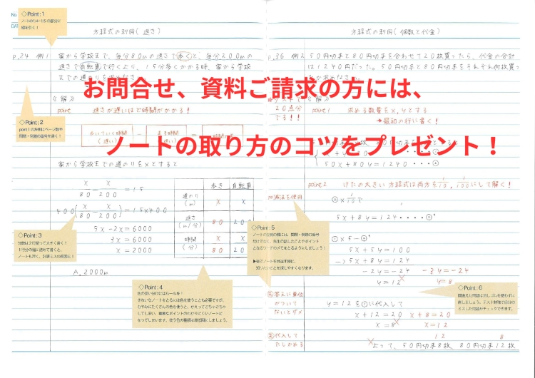 ノートの取り方もレクチャーしていきます。