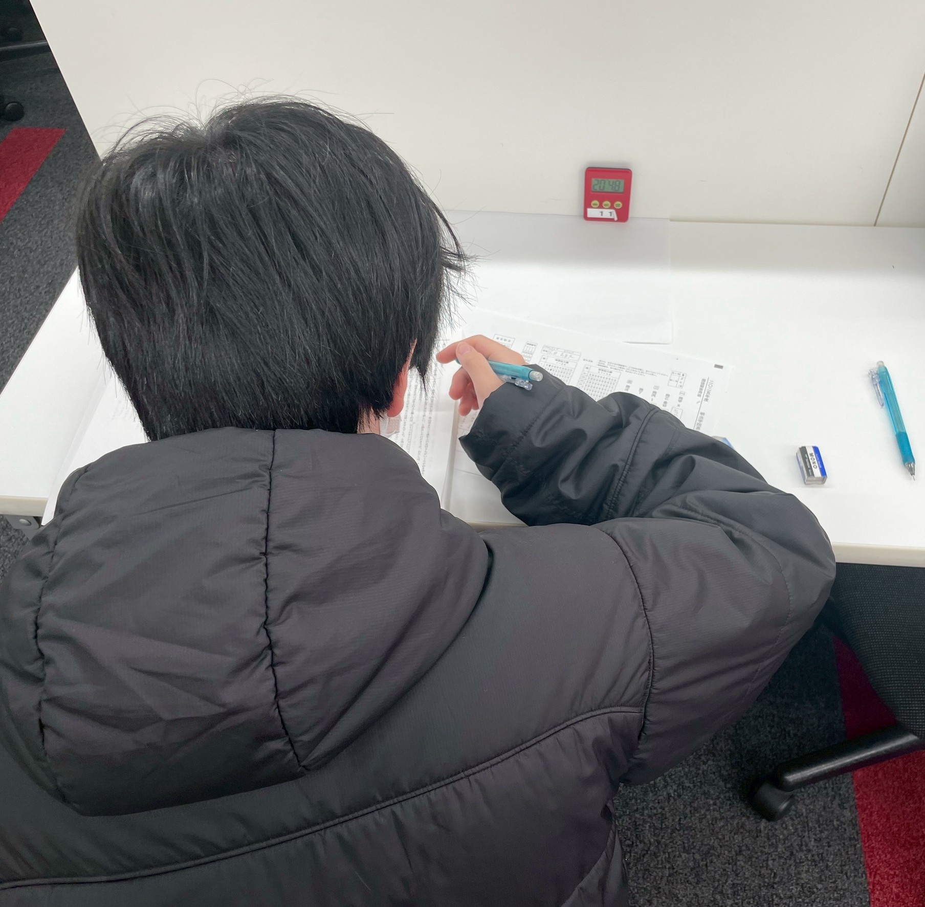 教室にて模試を