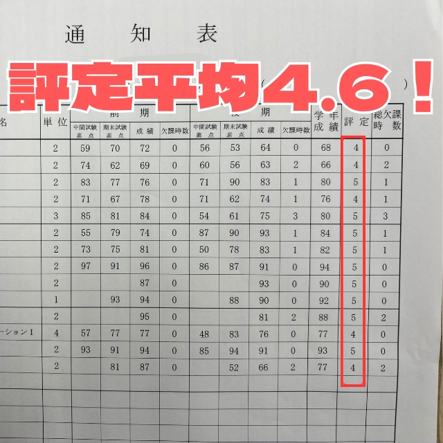 【武蔵野大学付属千代田高1年】評定平均4.6!