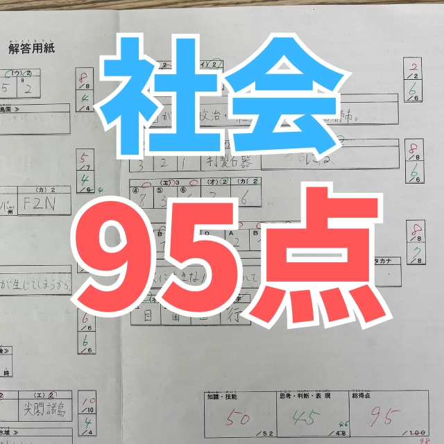 Hくんは社会のテストで95点という高得点を取りました。