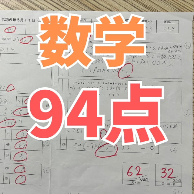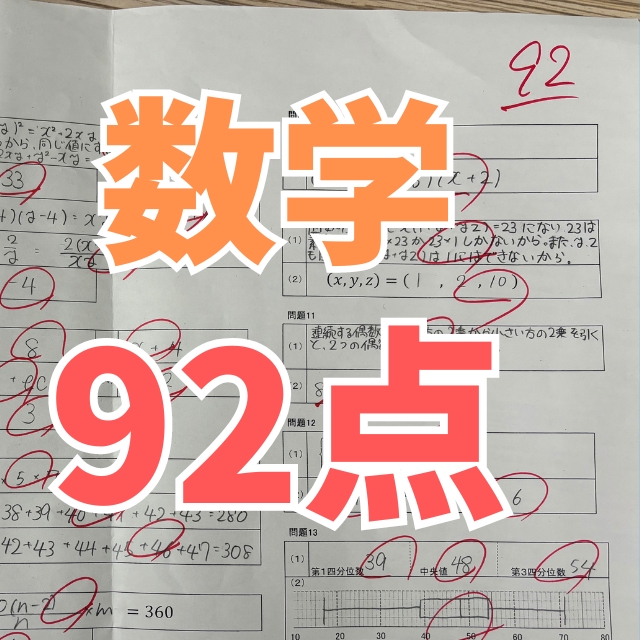 中原中学校|3年生|Sさん|数学|34点アップ|92点