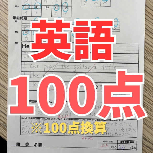 中原中学校|1年生|Aさん|英語|100点(100点換算)