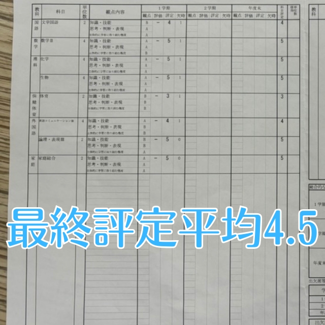 最終的に評定平均4.5を獲得しました。