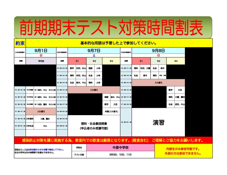 今日はテスト対策日程のお知らせと、