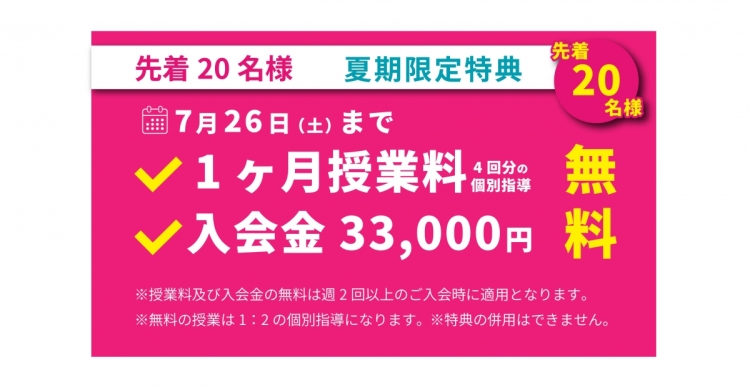 1ヶ月授業料(個別指導4回分) 無料!