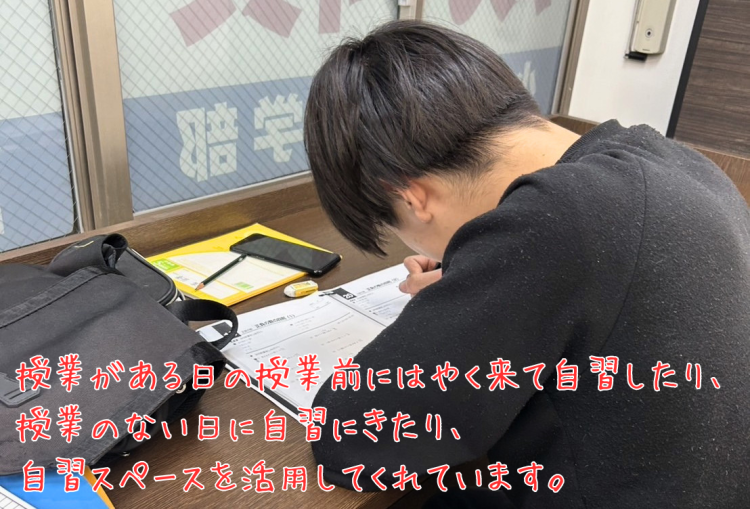 塾は、授業だけでなく自習も含めて最大限活用していただきたい場所です。