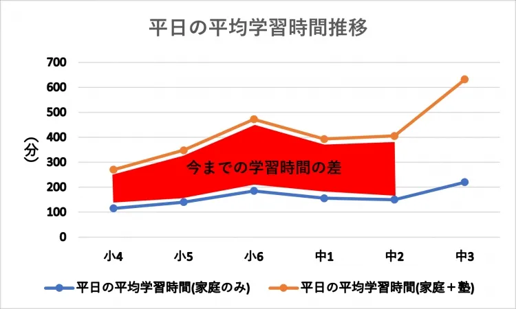 いままでの学習時間の積み重ねの差がある状態です。