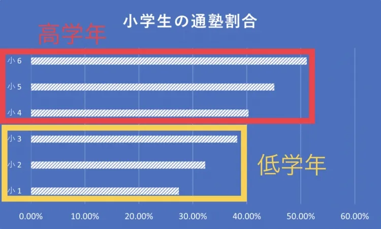 やはり高学年になると塾に通いだす現象は数字でも確認できますね。