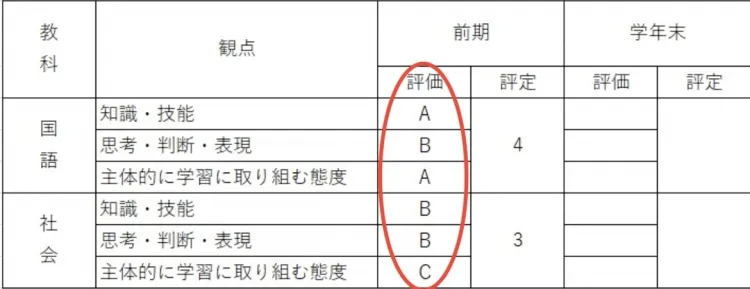 成績表を見ると9教科5段階で数字がついていますよね。