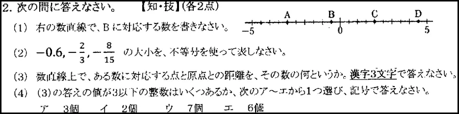 深四中1年生は「数量分野」と「図形分野」から出題されていますね。