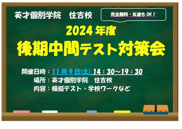 後期中間テスト対策会のお知らせです!