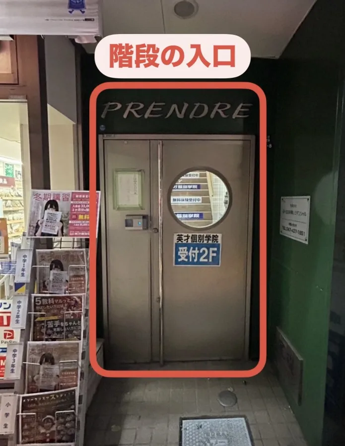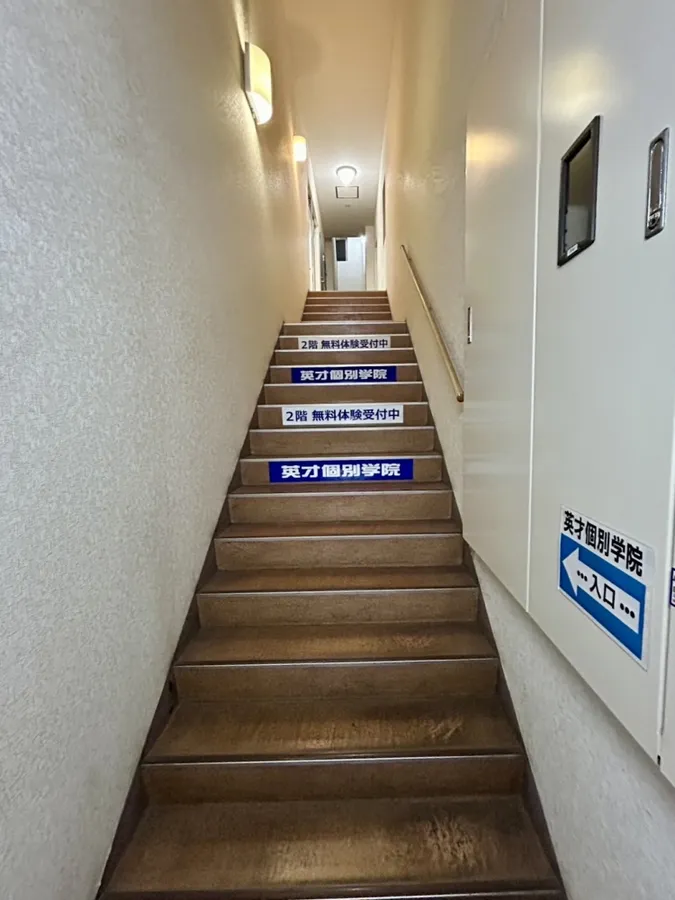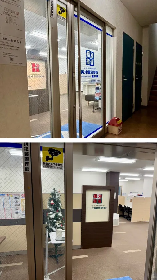 扉を開くと目の前には「英才個別学院」のロゴが見えます。
